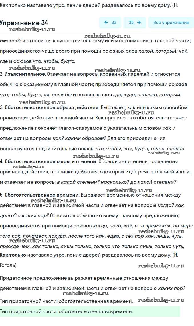 Решебник / контрольная работа / сложноподчинённое предложение / вариант 1 / 34