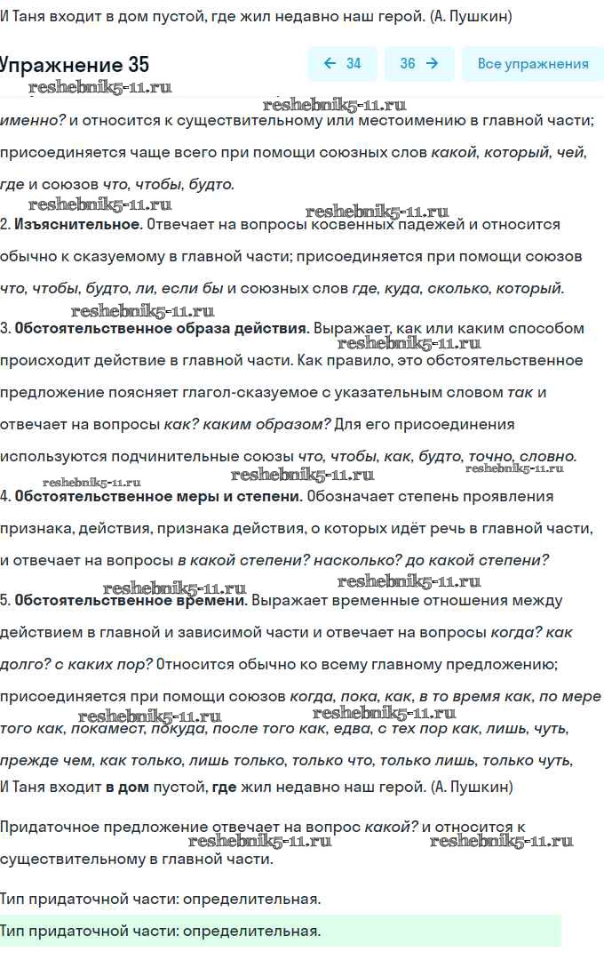 Решебник / контрольная работа / сложноподчинённое предложение / вариант 1 / 35