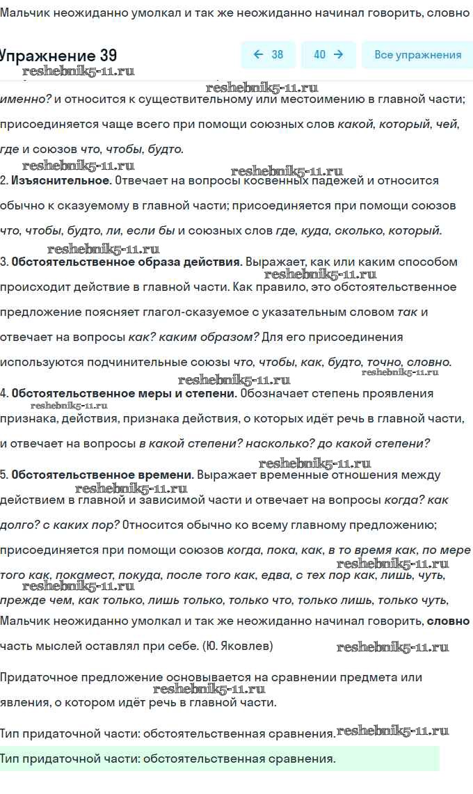 Решебник / контрольная работа / сложноподчинённое предложение / вариант 1 / 39