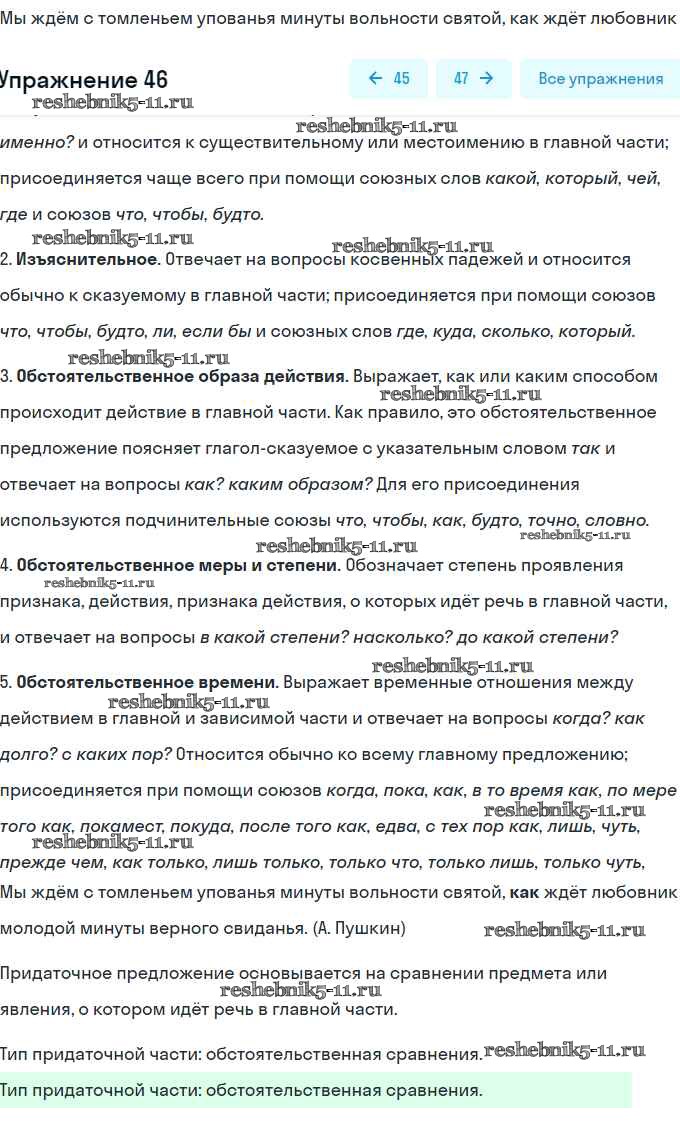 Решебник / контрольная работа / сложноподчинённое предложение / вариант 1 / 46