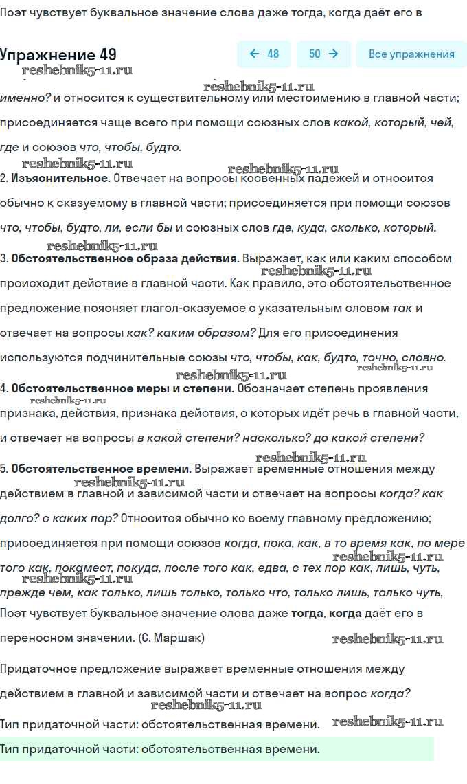 Решебник / контрольная работа / сложноподчинённое предложение / вариант 1 / 49