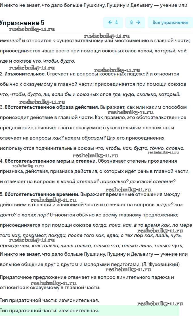 Решебник / контрольная работа / сложноподчинённое предложение / вариант 1 / 5