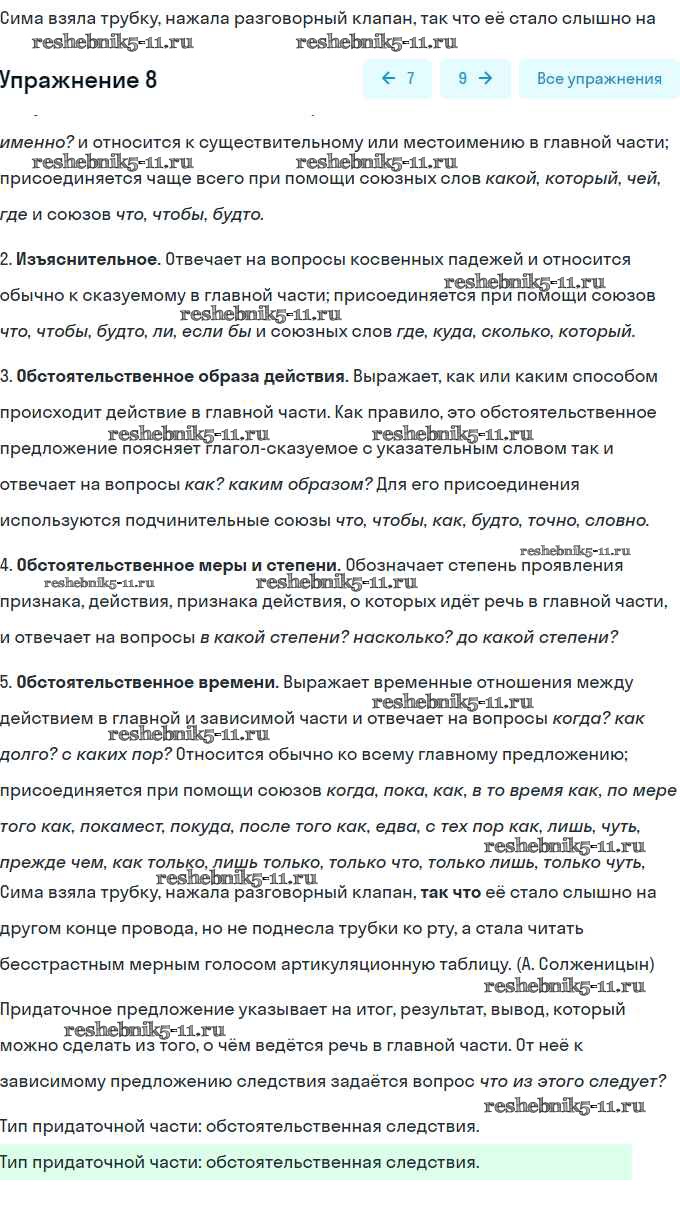 Решебник / контрольная работа / сложноподчинённое предложение / вариант 1 / 8