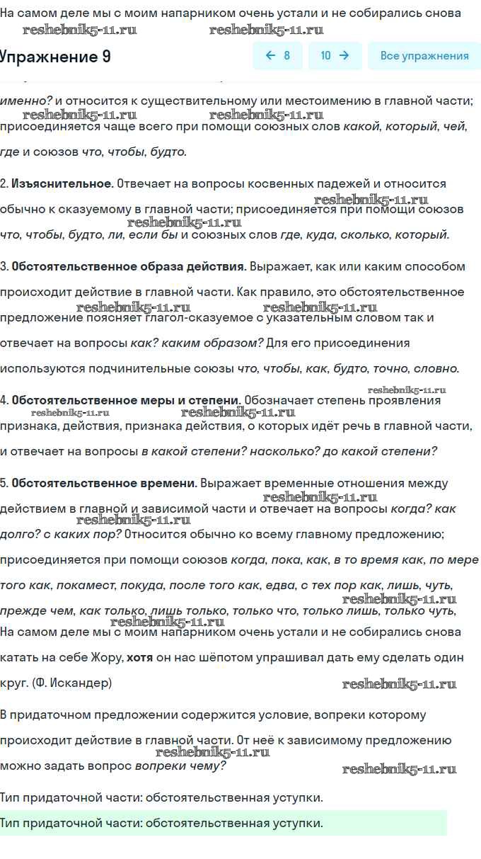 Решебник / контрольная работа / сложноподчинённое предложение / вариант 1 / 9