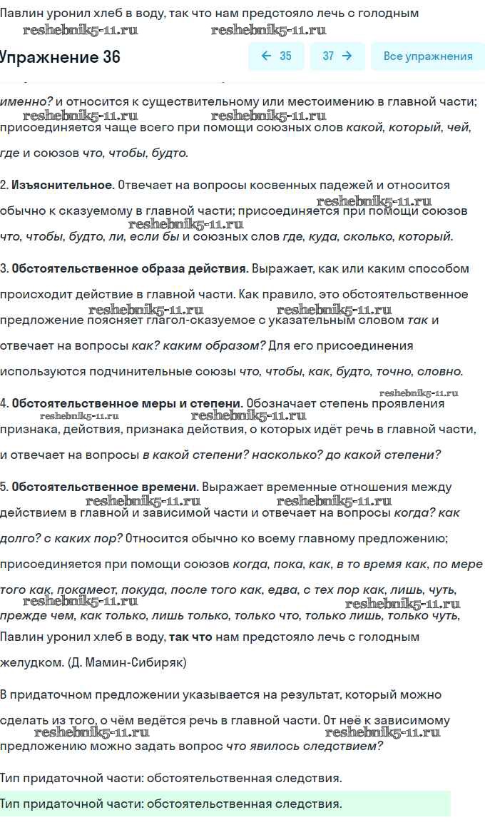 Решебник / контрольная работа / сложноподчинённое предложение / вариант 2 / 36