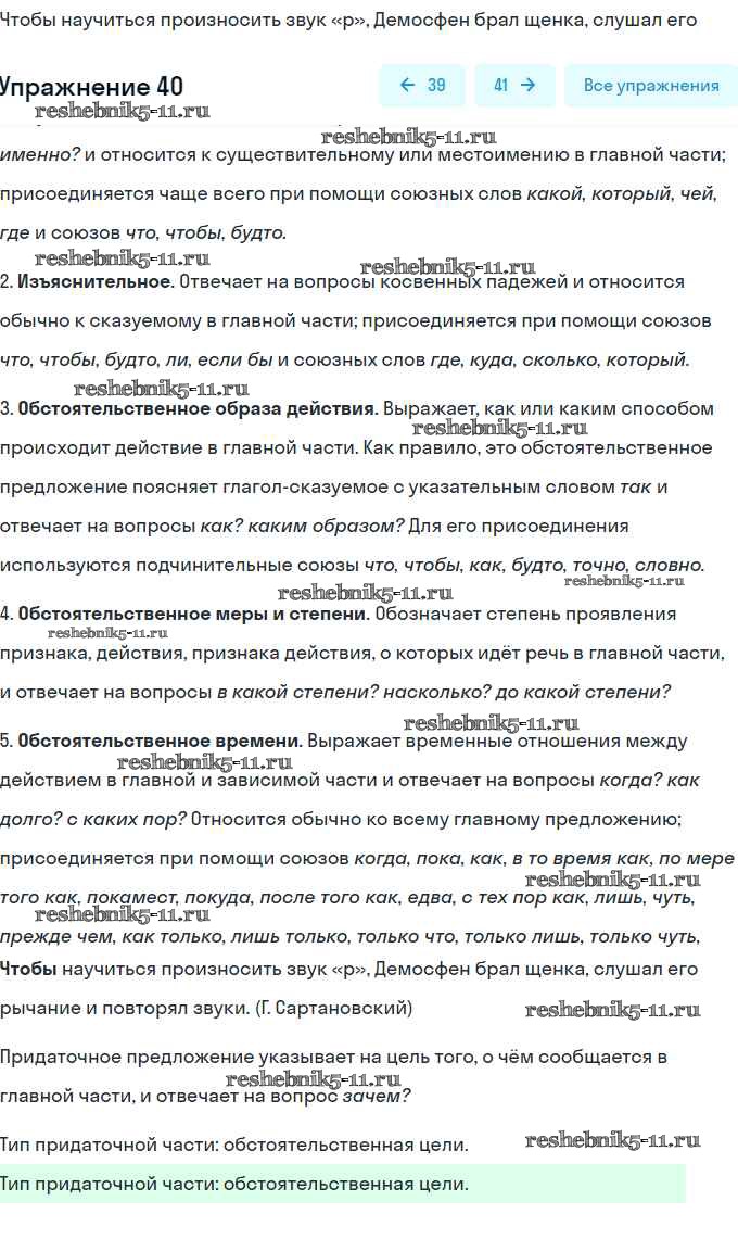 Решебник / контрольная работа / сложноподчинённое предложение / вариант 2 / 40