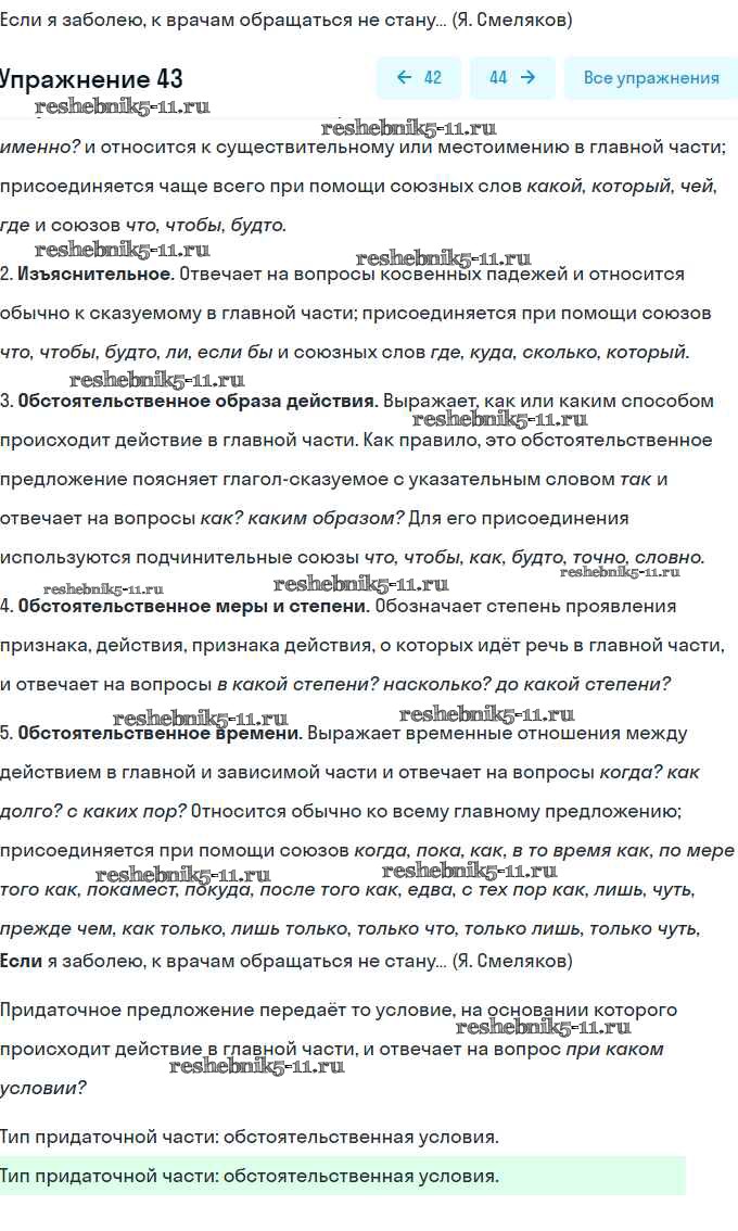 Решебник / контрольная работа / сложноподчинённое предложение / вариант 2 / 43