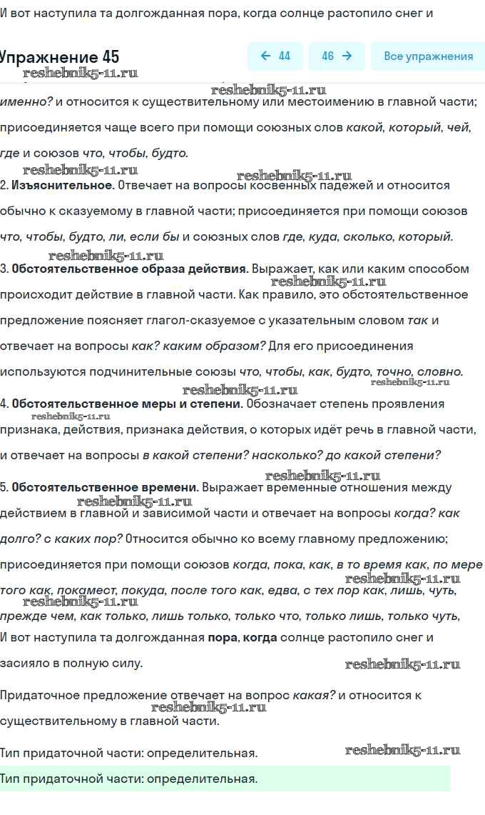 Решебник / контрольная работа / сложноподчинённое предложение / вариант 2 / 45