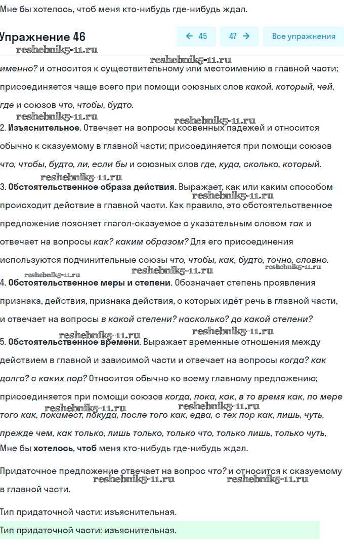 Решебник / контрольная работа / сложноподчинённое предложение / вариант 2 / 46