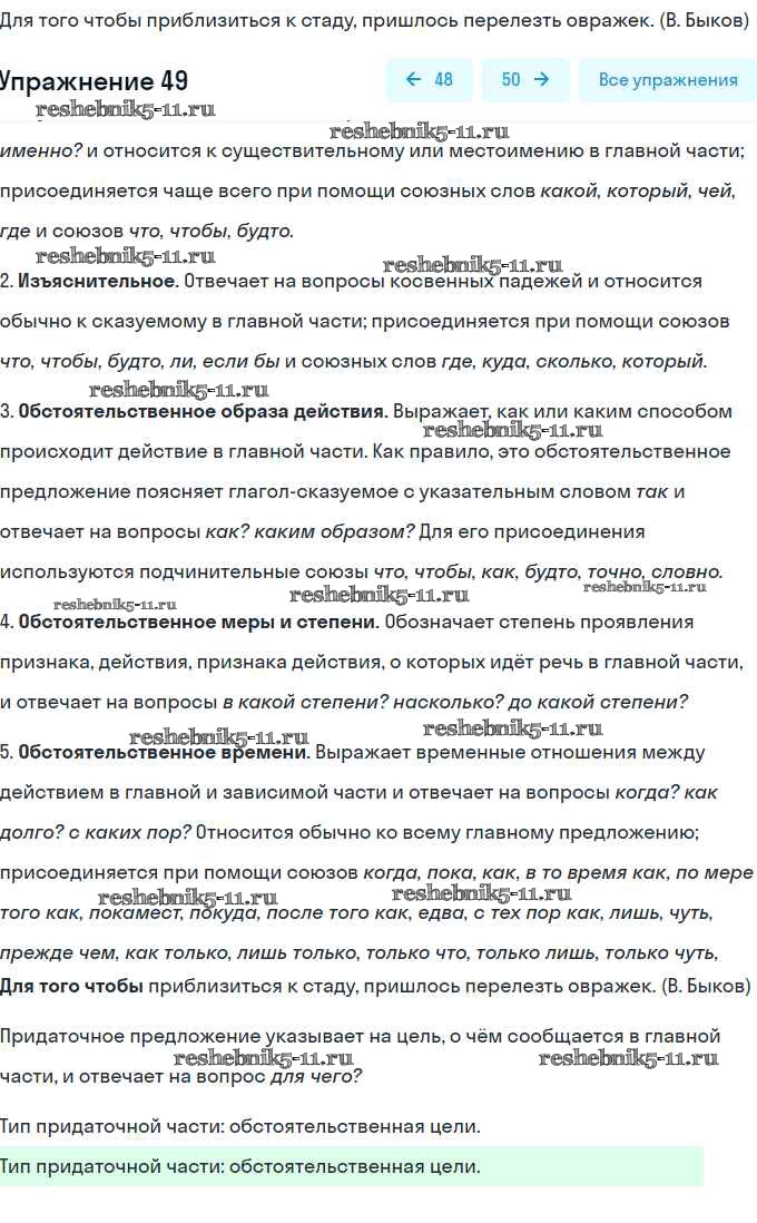 Решебник / контрольная работа / сложноподчинённое предложение / вариант 2 / 49