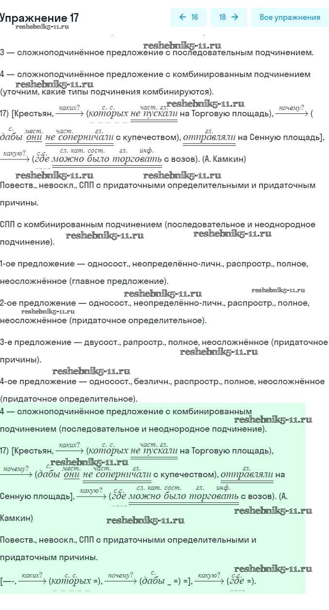 Решебник / контрольная работа / Сложноподчинённое предложение c несколькими придаточными / вариант 1 / 17