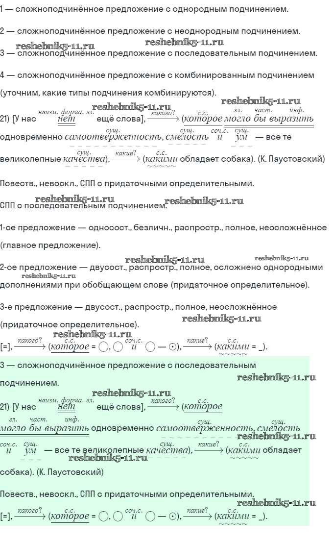 Решебник / контрольная работа / Сложноподчинённое предложение c несколькими придаточными / вариант 1 / 21