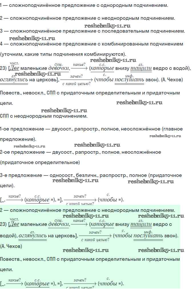 Решебник / контрольная работа / Сложноподчинённое предложение c несколькими придаточными / вариант 1 / 23