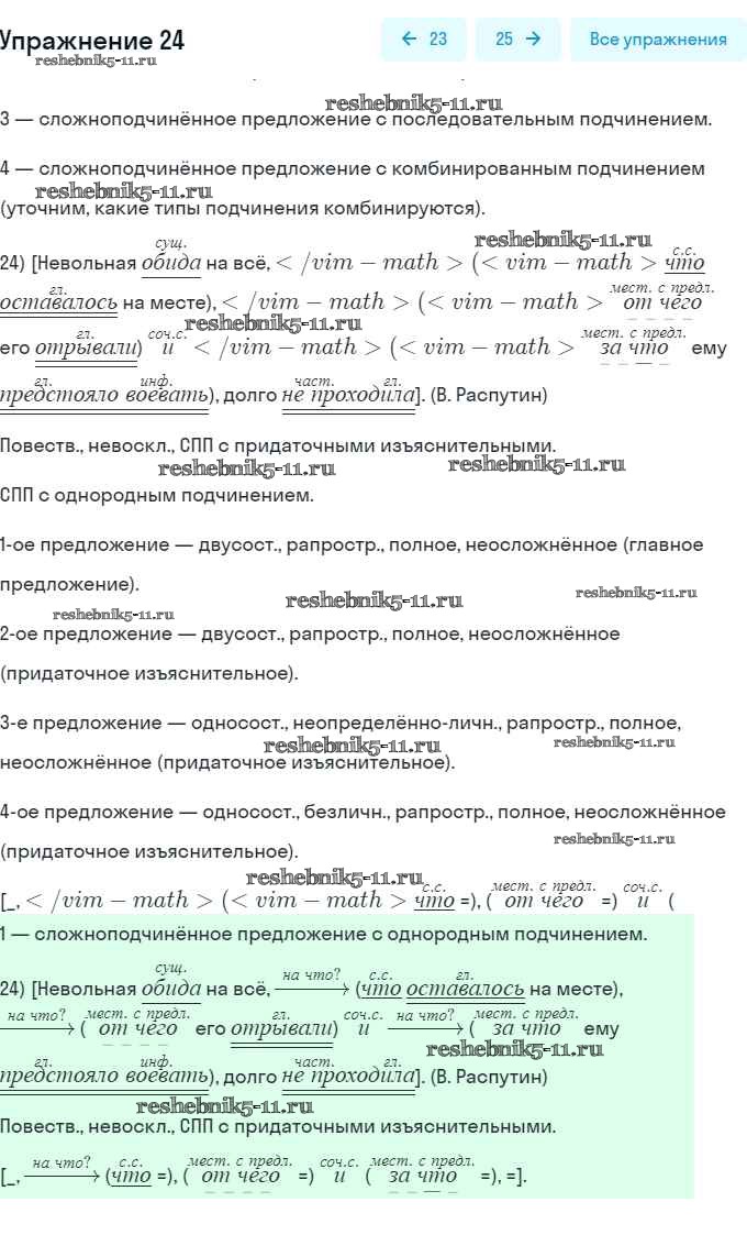 Решебник / контрольная работа / Сложноподчинённое предложение c несколькими придаточными / вариант 1 / 24