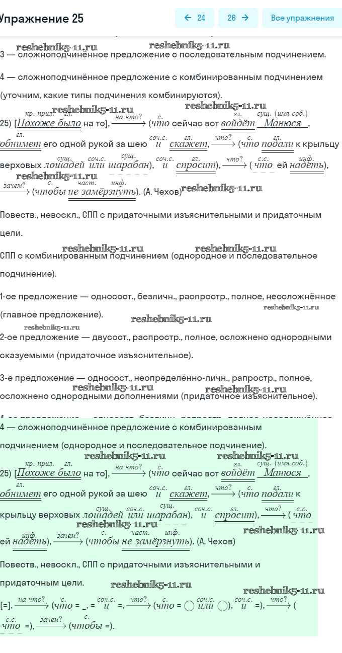 Решебник / контрольная работа / Сложноподчинённое предложение c несколькими придаточными / вариант 1 / 25