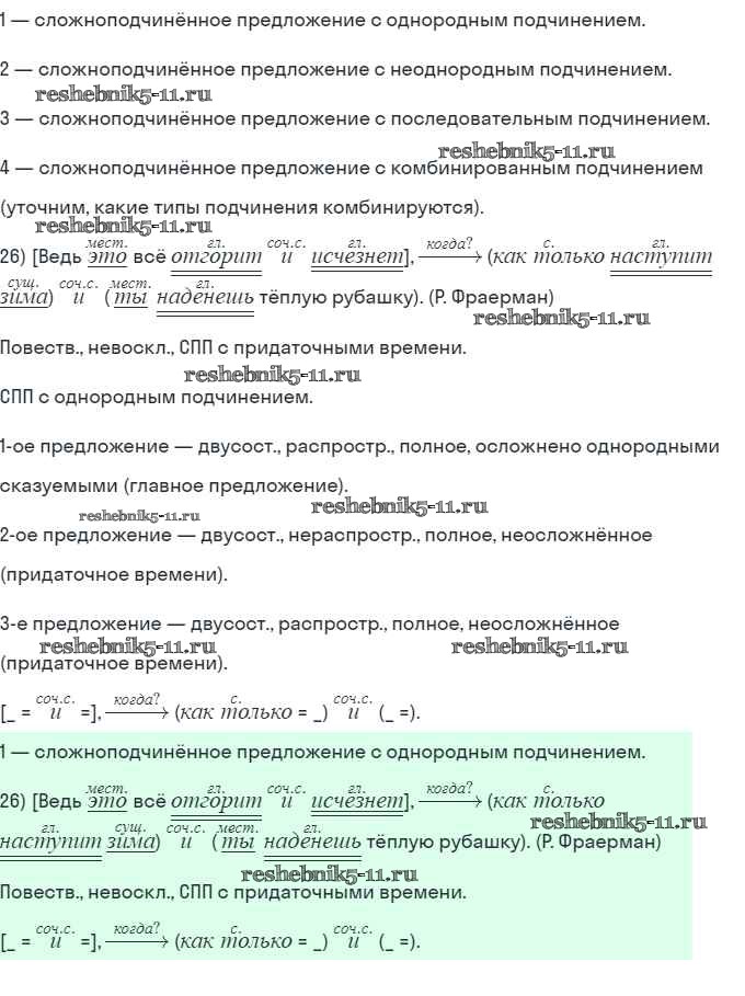 Решебник / контрольная работа / Сложноподчинённое предложение c несколькими придаточными / вариант 1 / 26