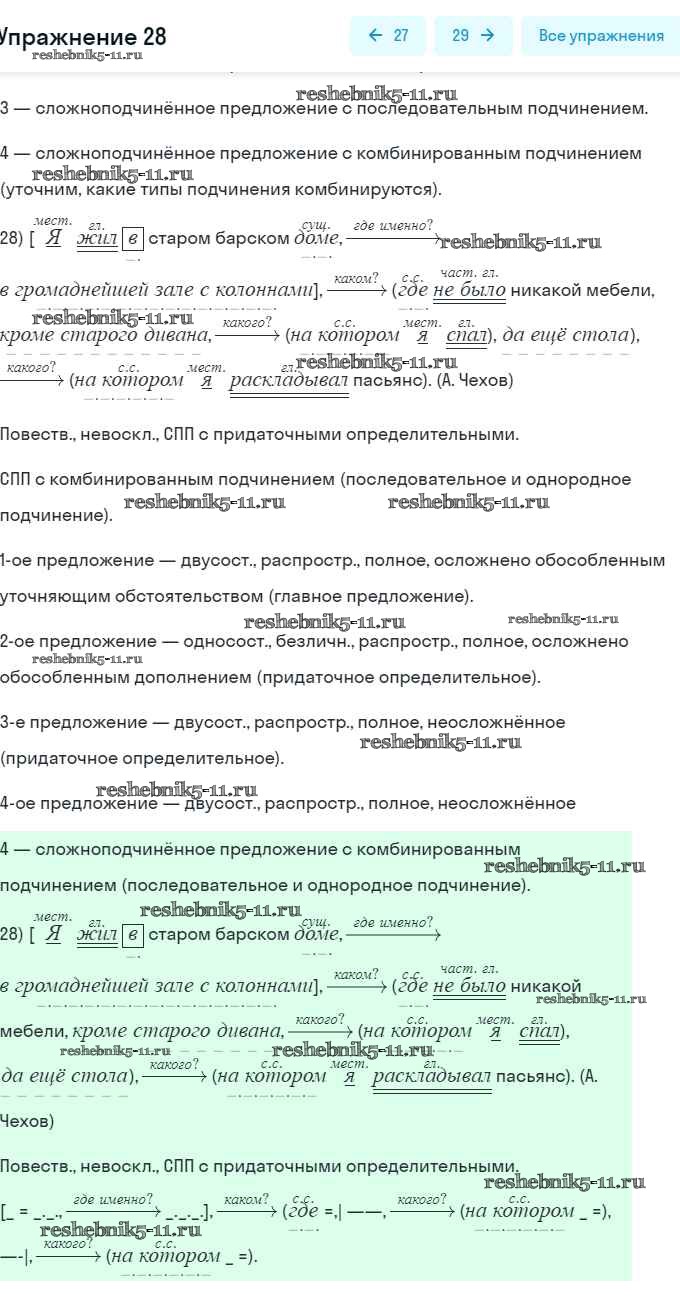 Решебник / контрольная работа / Сложноподчинённое предложение c несколькими придаточными / вариант 1 / 28