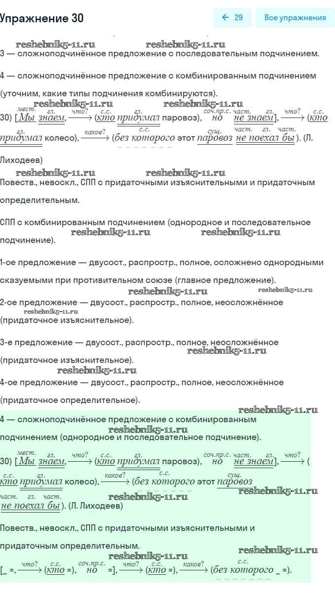 Решебник / контрольная работа / Сложноподчинённое предложение c несколькими придаточными / вариант 1 / 30